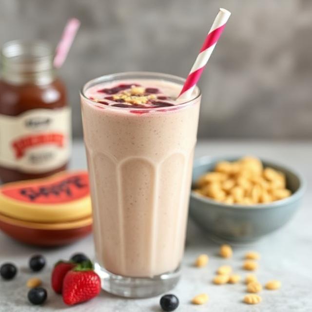 - Use 2 tablespoons peanut butter, 1 cup mixed berries, 1 cup milk, ½ frozen banana, and 1 tablespoon honey.